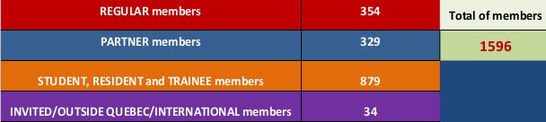REGULAR member distribution across Quebec Centers / Institutions (available only in french)
