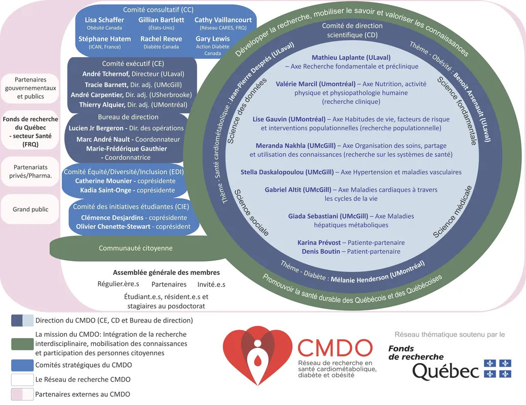 Le Réseau de recherche CMDO a pour mission de poursuivre le développement de la recherche en santé métabolique et cardiovasculaire, en diabète et en obésité, en transmettre le savoir et en mobiliser les connaissances pour promouvoir la santé durable chez les Québécoises et les Québécois.